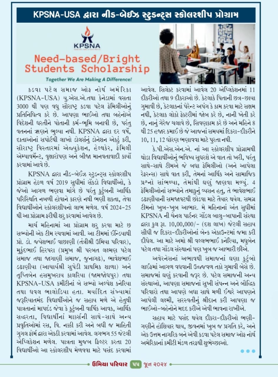 KPSNA is committed to providing access to affordable and quality education for students from families with limited or no economic resources. One of our primary focuses is administering need-based scholarships for students, particularly those in the 11th and 12th grades. We establish criteria to qualify for these scholarships based on the financial and family situations of the applicants. Each year, hundreds of students apply, and we select a few recipients, allocating scholarship amounts of up to $1,000 each after verifying their genuine needs.