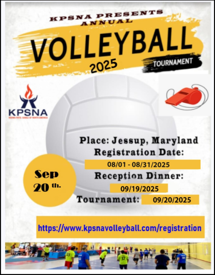 We are pleased to inform you that the "KPSNA Annual Volleyball Tournament 2025" registration at Jessup, Maryland, on 20th September 2025, is now open.